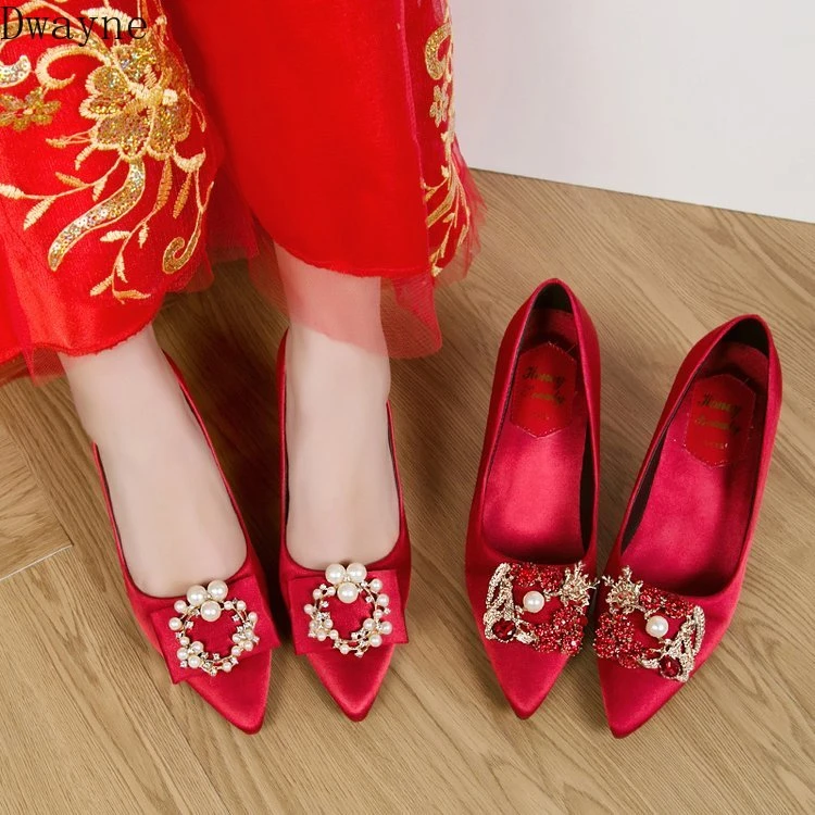 Zapatos de boda para mujer embarazada, tacón cuadrado, tacones altos de punta, seda de perla satinada, elegantes, 7 Cm|Zapatos de tacón de mujer| - AliExpress