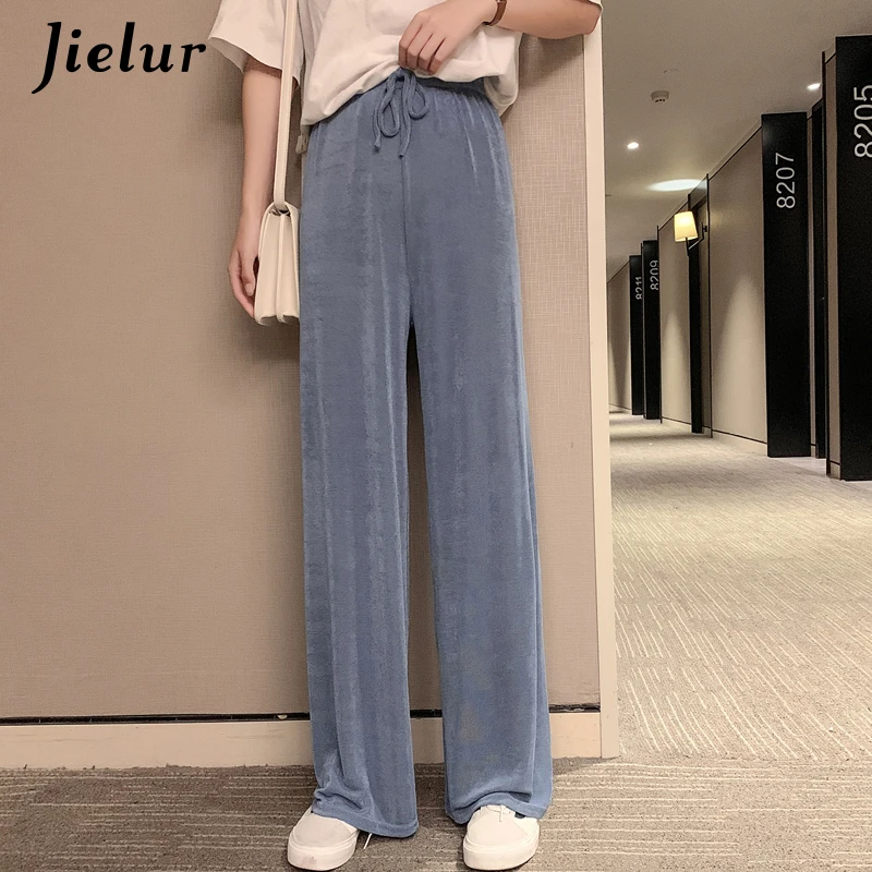 Jielur pantalones de cintura alta para mujer, Pantalón recto de punto de seda fría, informal, suelto, largo ancho, Color sólido, para verano, 2020| Pantalones y pantalones capri| - AliExpress