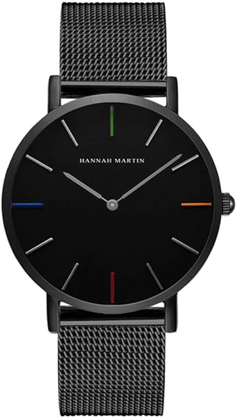 Montre à Quartz Homme Femme Ultra-Mince étanche Sport Entreprise Décontractée Montre, Cadran Noir et Pointeur coloré avec Le Ruban Noir en Acier Inoxydable: Amazon.fr: Montres