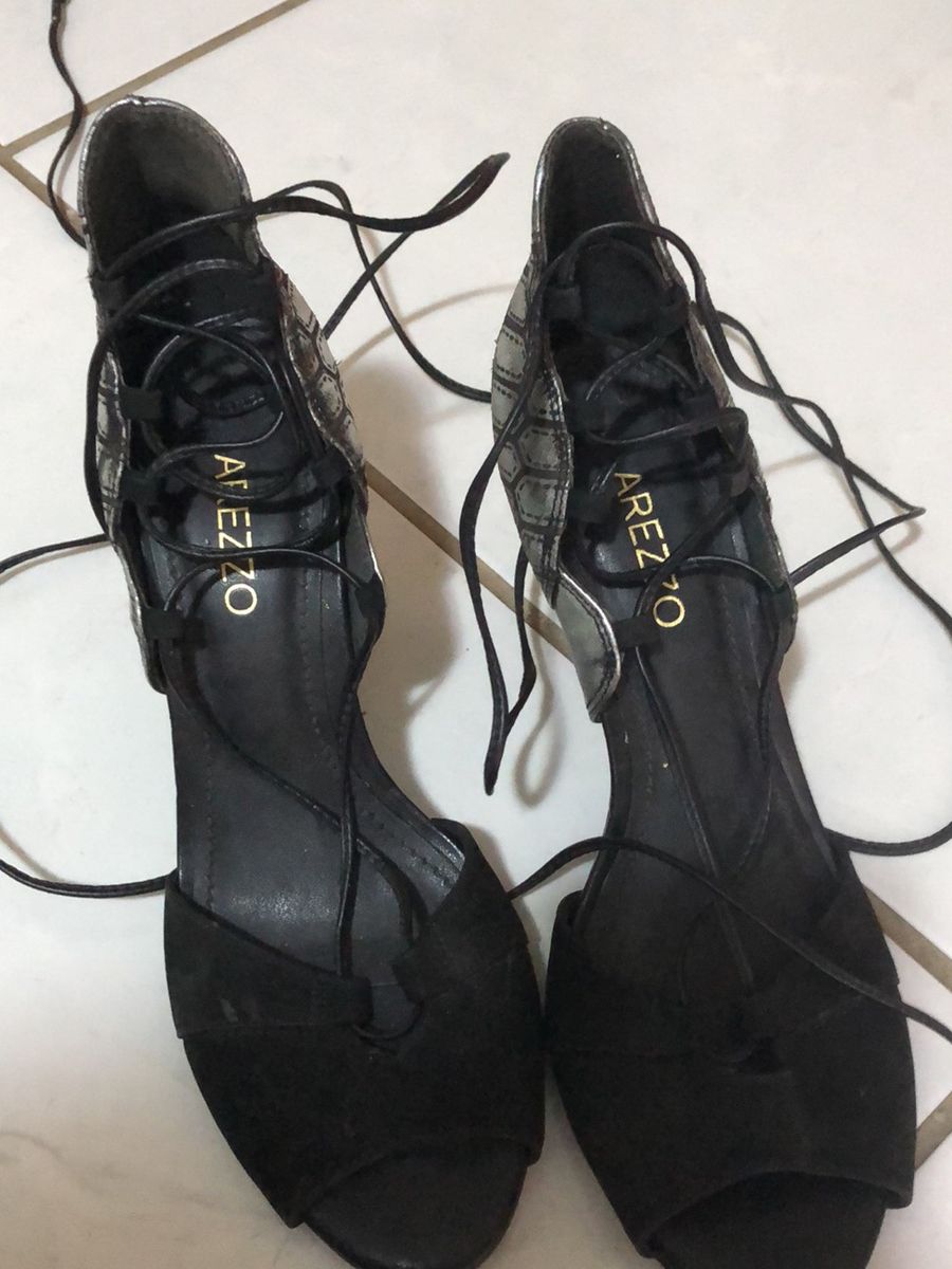 Sandália Salto Preta de Amarrar Arezzo | Sandália Feminina Arezzo Nunca Usado 38599238 | enjoei